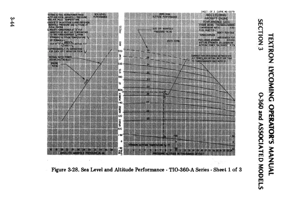 Figure 3.28. Sea Level and Altitude Performance - TIO-360-A Series. Sheet 1 of 3