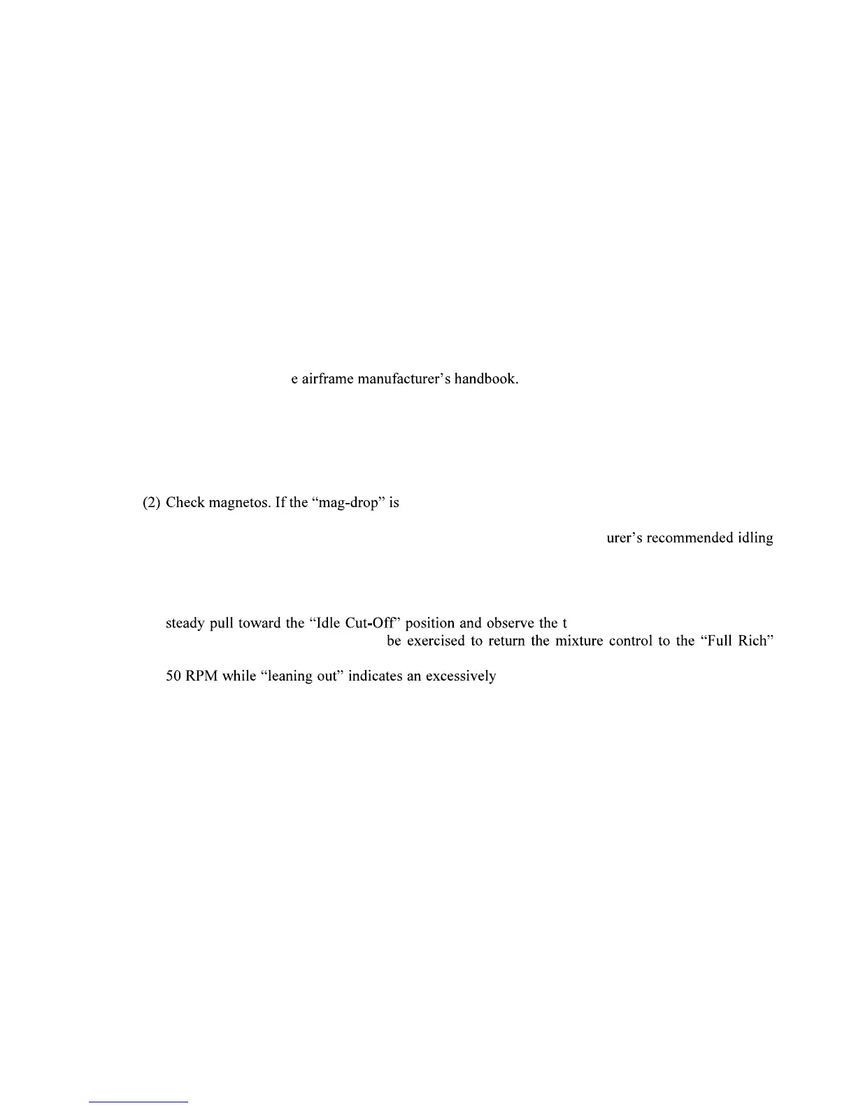 (4) When the idling speed has been stabilized, move the cockpit mixture control lever with a smooth,