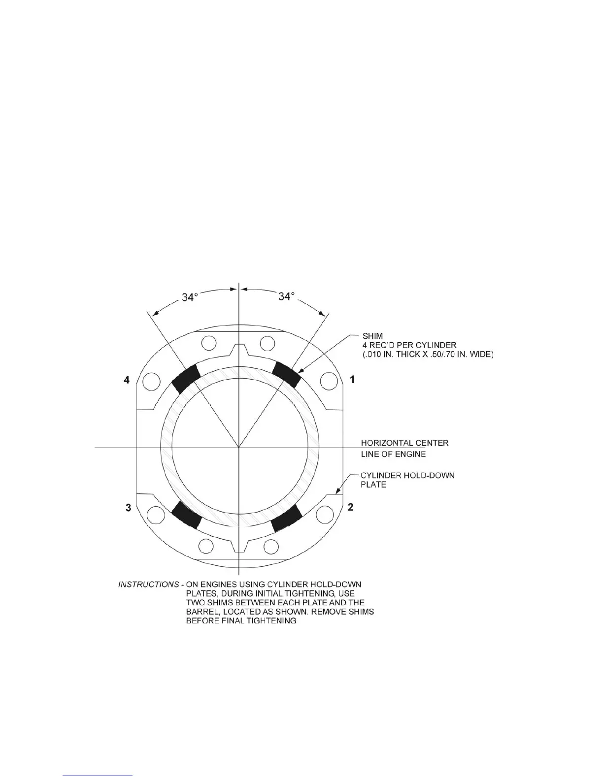 (b) Remove shims, and using the same sequence, tighten the ½ inch cylinder base nuts to 600 in.-