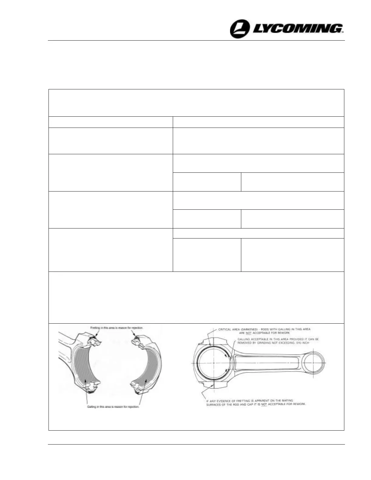 o Galling found/connecting rod