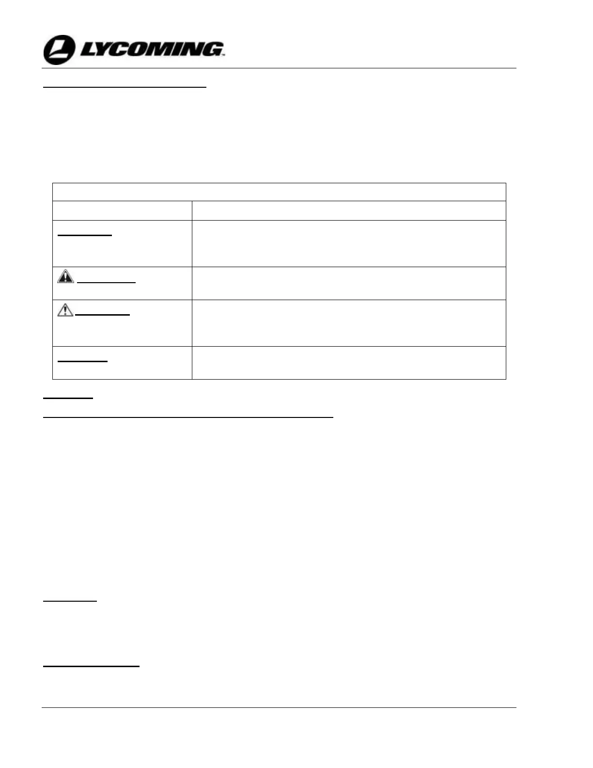 documents. Although Lycoming Engines cannot know all possible hazards or damages, it makes a