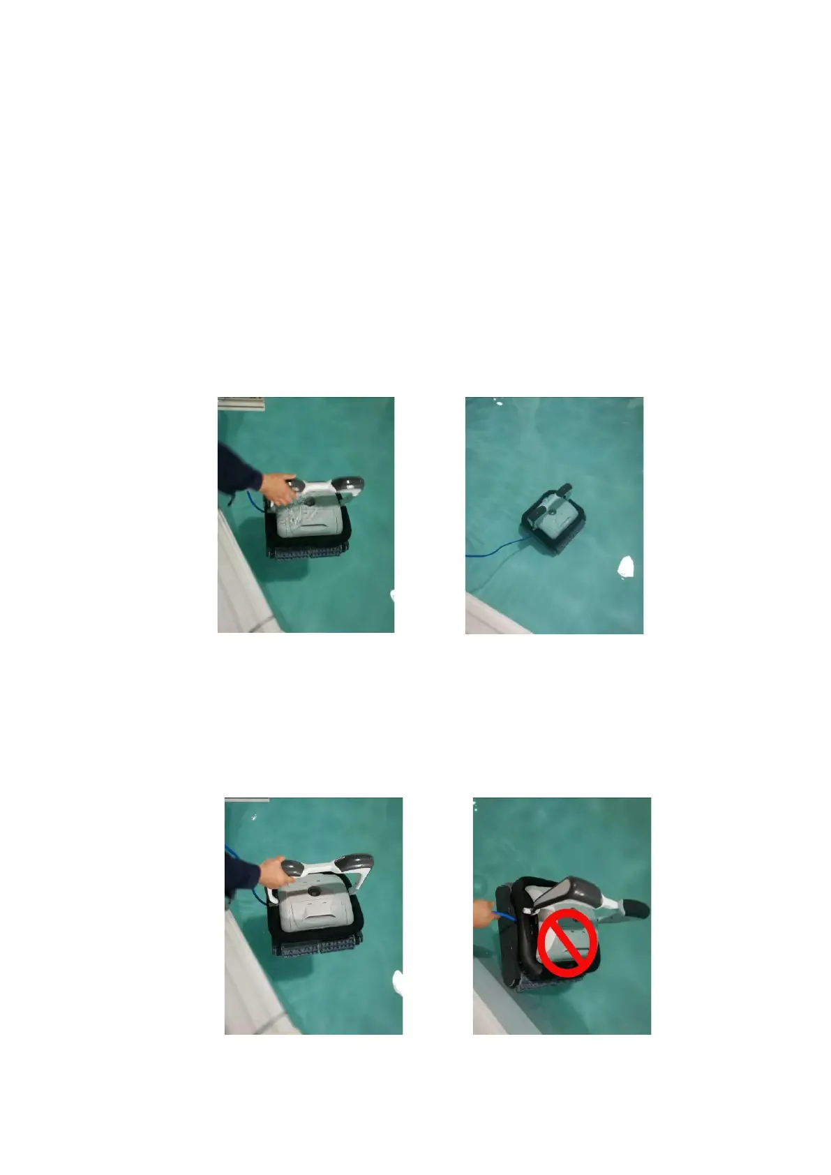 When pulling cleaner out of water suspend the cleaner above water for about 10-15