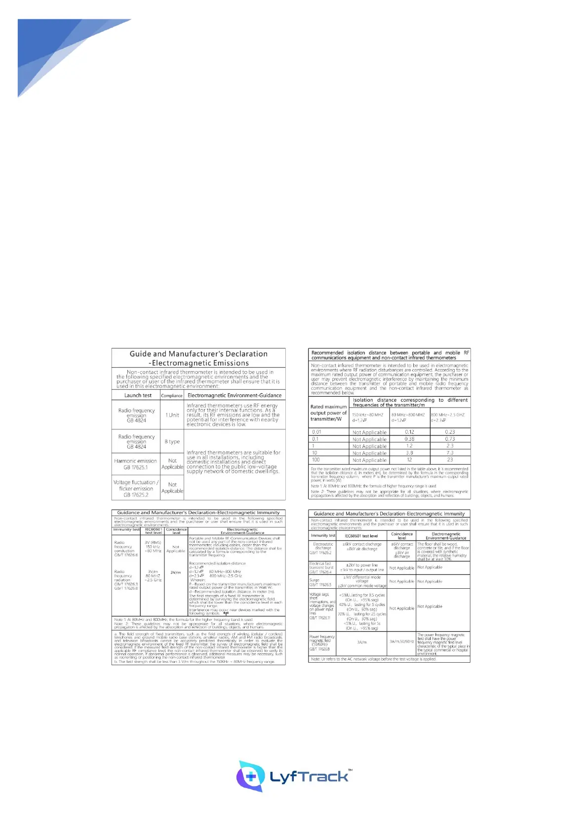 Note: Non-contact infrared thermometer meets YY0505 electromagnetic compatibility requirements; User shall install