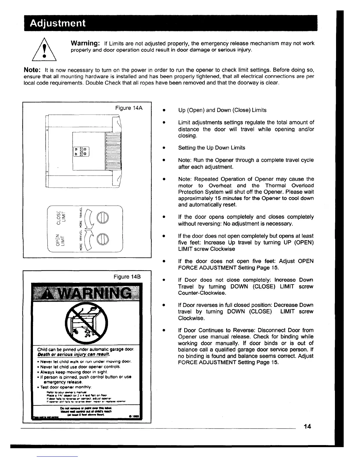 Lynx 455 PLUS - Opener Adjustment; Setting the Up Down Limits