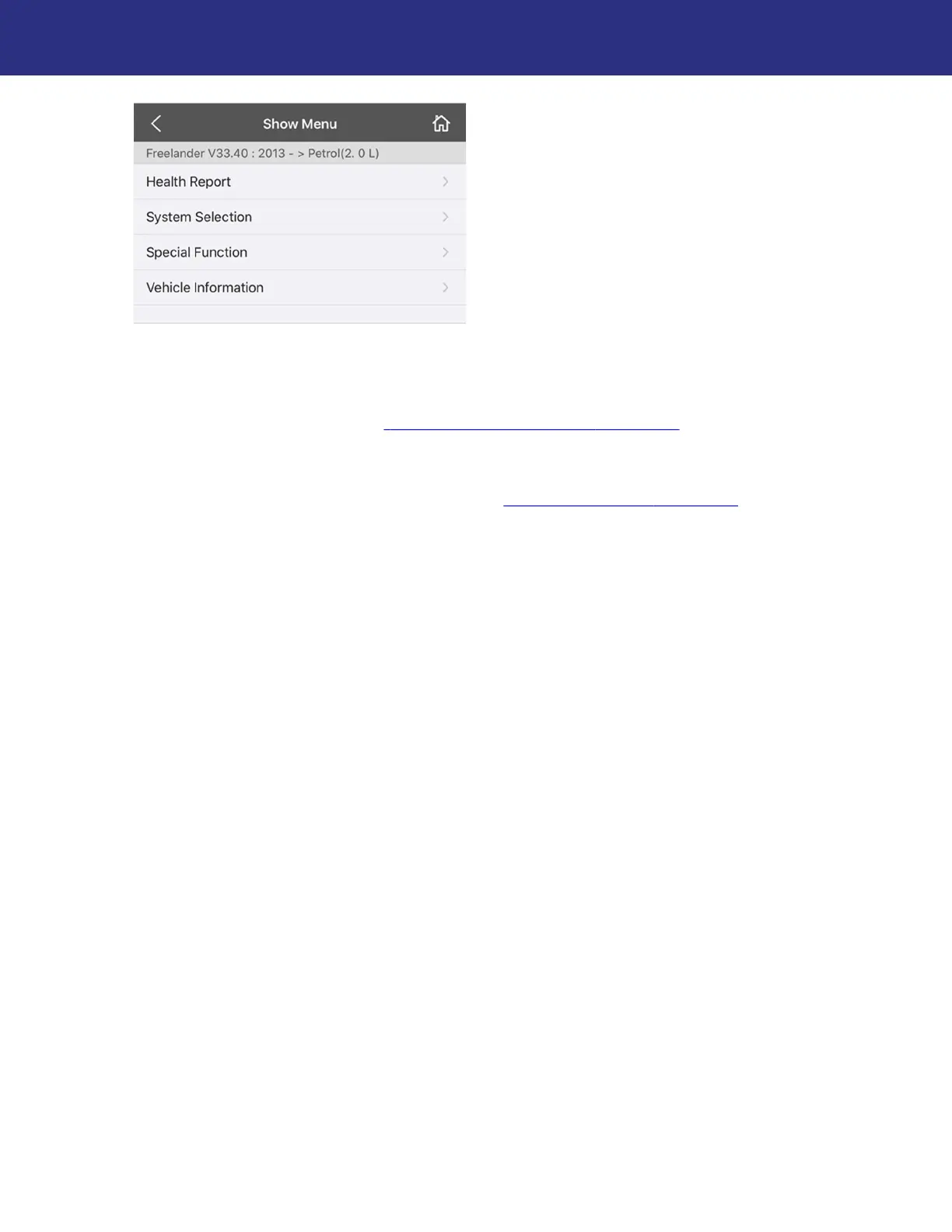 NOTE: When selecting specific systems and functions, the app will prompt you with