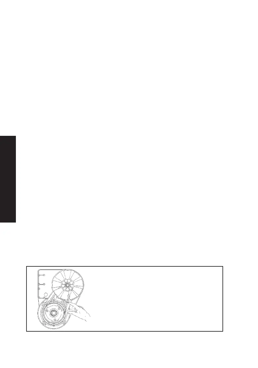 på fläktremmen med t.ex. en mejsel genom fläktskyddet.