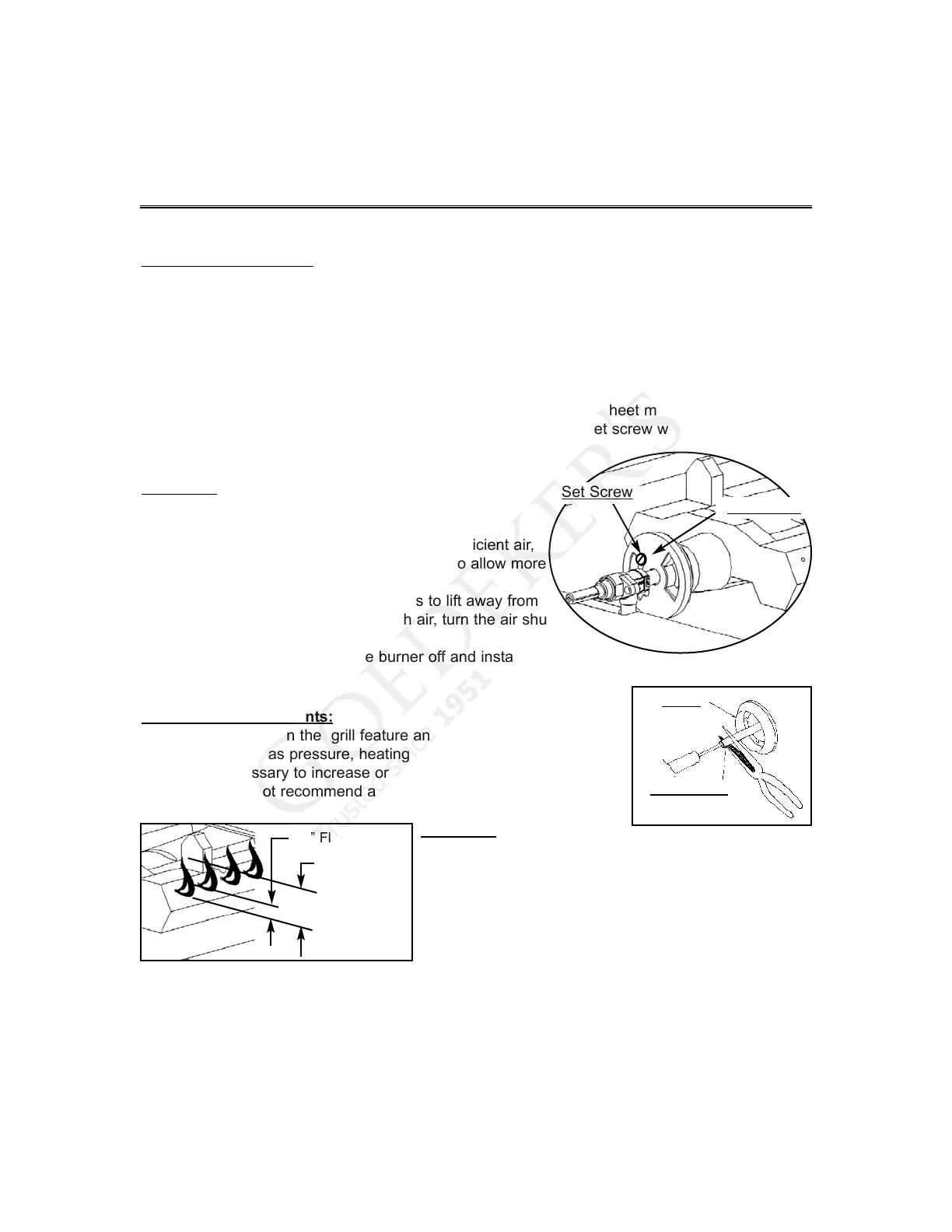 adjust the burners. The flames of the Grill burners should be visually checked and compared to