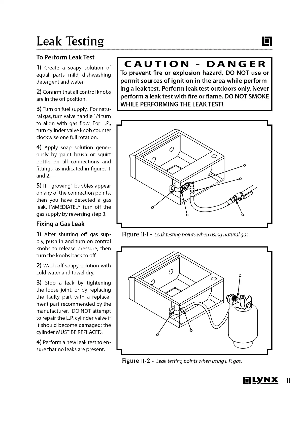 Lynx L27FR - Leak Testing Procedures; Performing Gas Leak Checks; Repairing Gas Leaks and Connections
