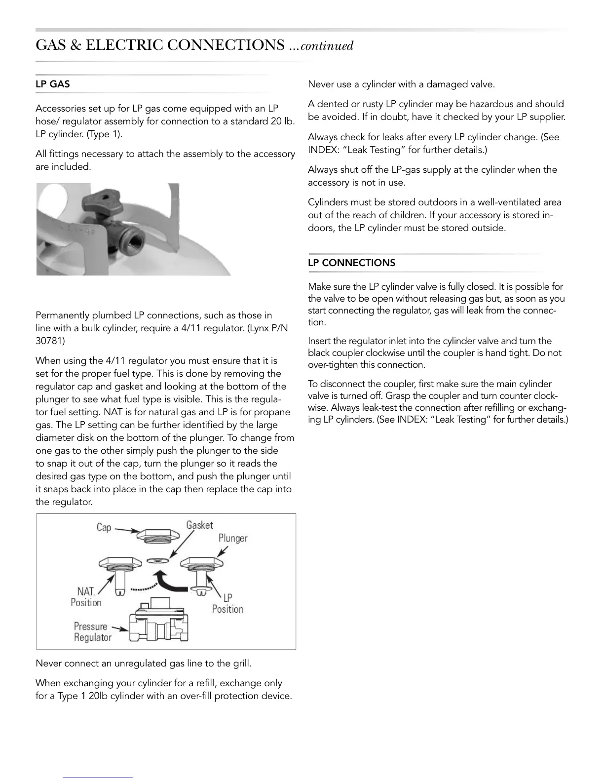 line with a bulk cylinder, require a 4/11 regulator. (Lynx P/N