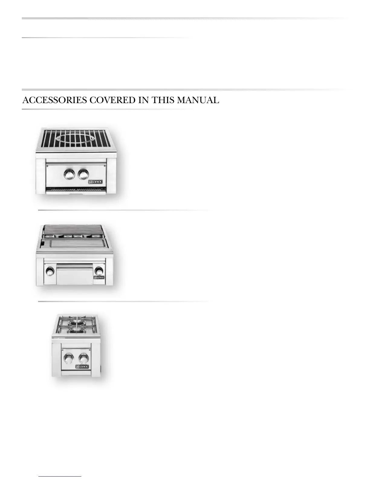 This manual covers several Lynx accessory appliances and optional accessories for those appliances.