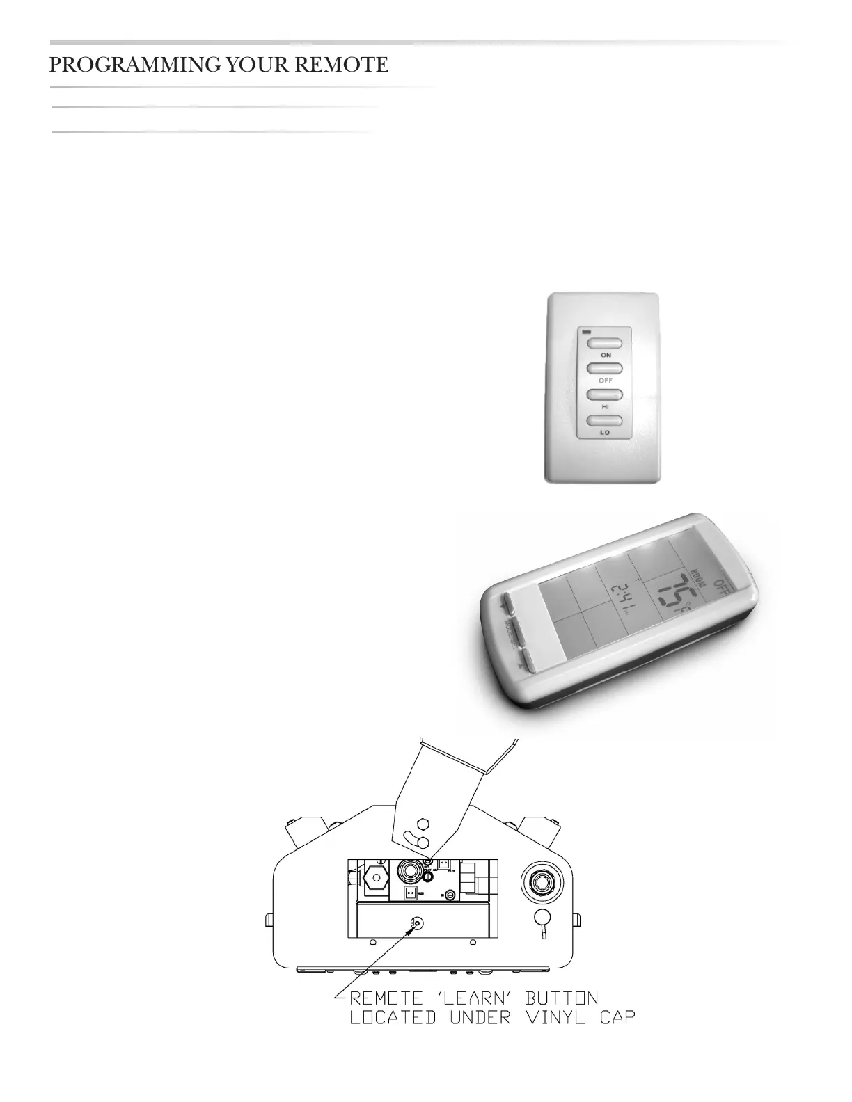 OPERATION OF YOUR HEATER’ page 20. The receiver