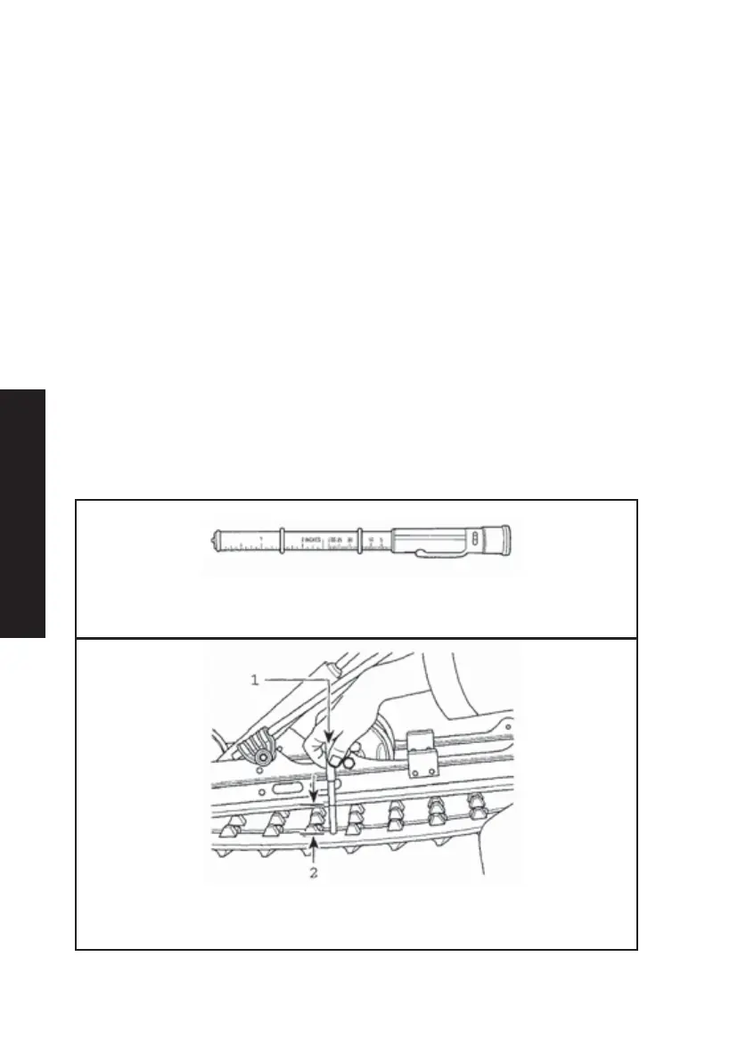 Låt boggiefjädringen fjädra ut. Kontrollera därefter avståndet mellan glidskena och drivband.