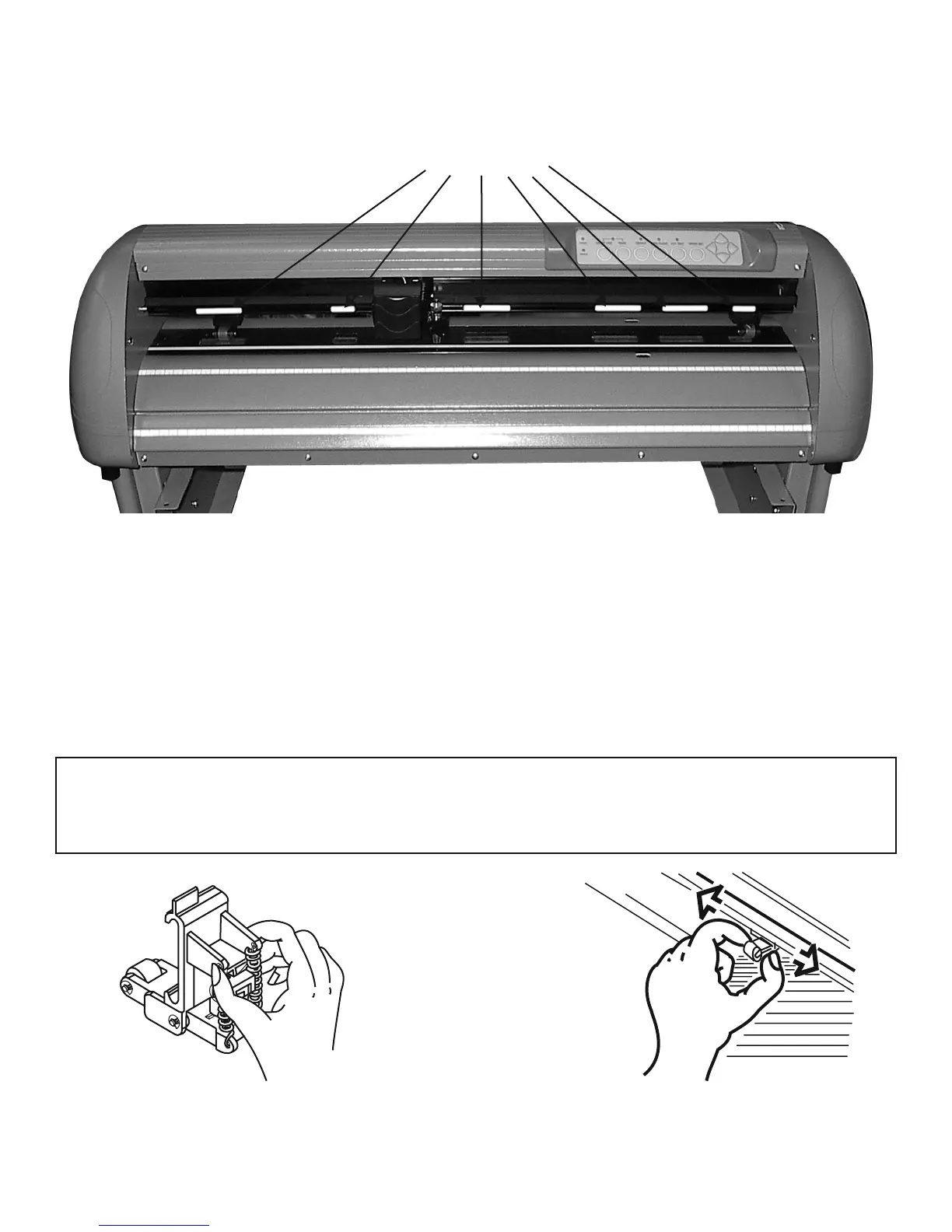 5. Turn on the power; the tool carriage will measure the size of the media automatically, and the plotting