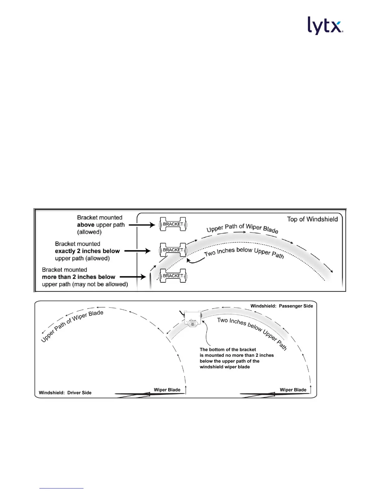 The figures below provide Lytx’s recommendations for mounting the WU on the vehicle