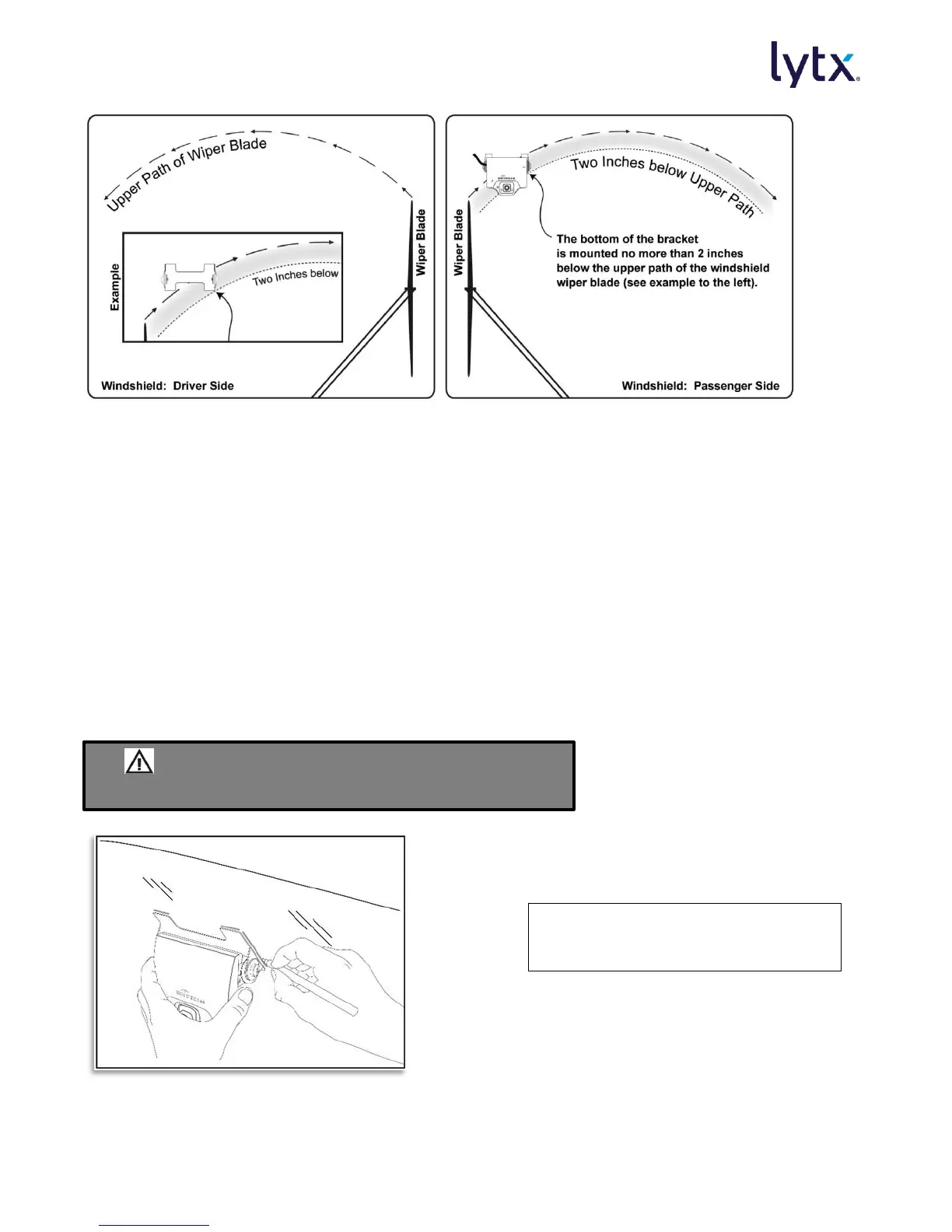 above) 175 mm (7 inches) of the lower edge of the area swept by the windshield wipers, provided