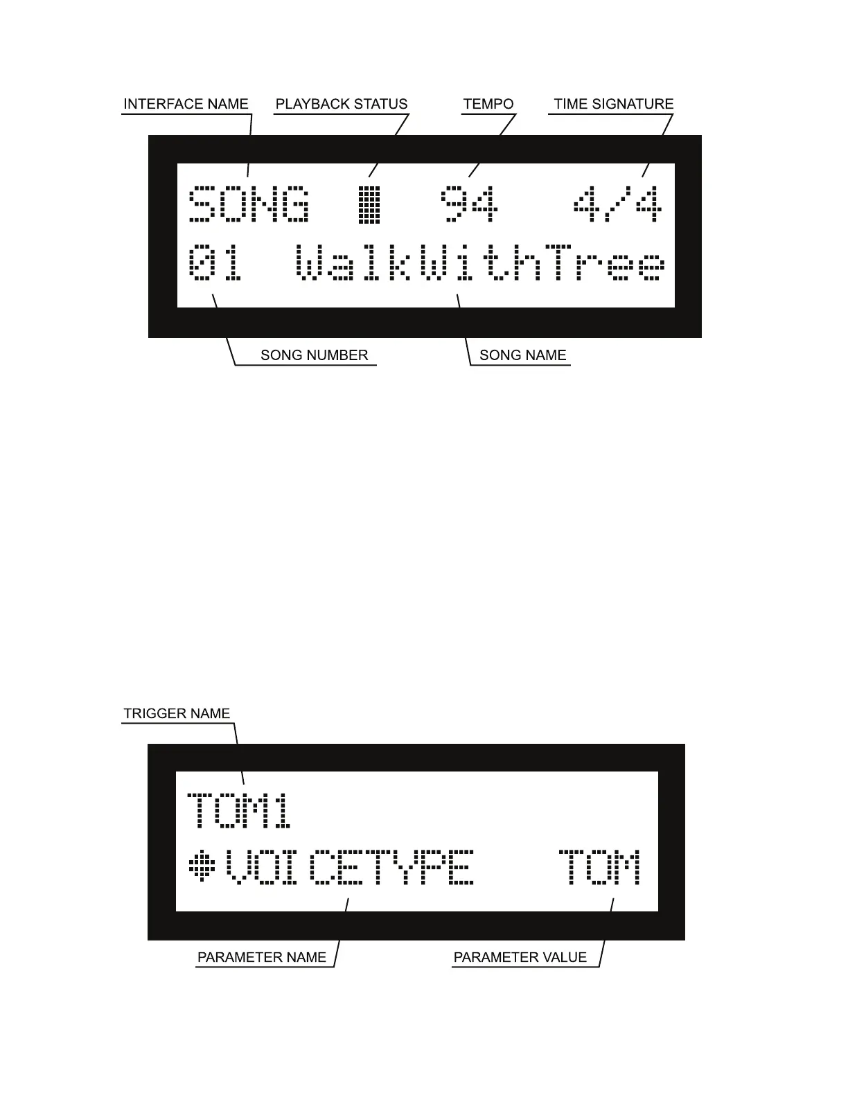 To enter this interface, press the SONG button. From this interface, you can perform the following functions: