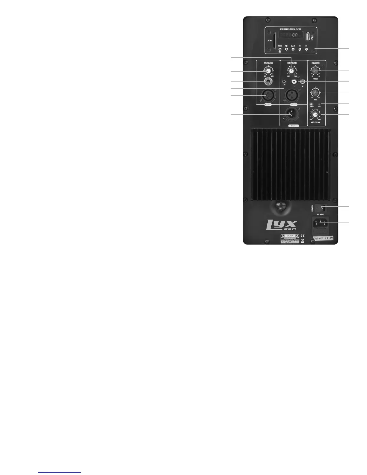 12. MP3 Volume Knob: Controls volume of MP3 player