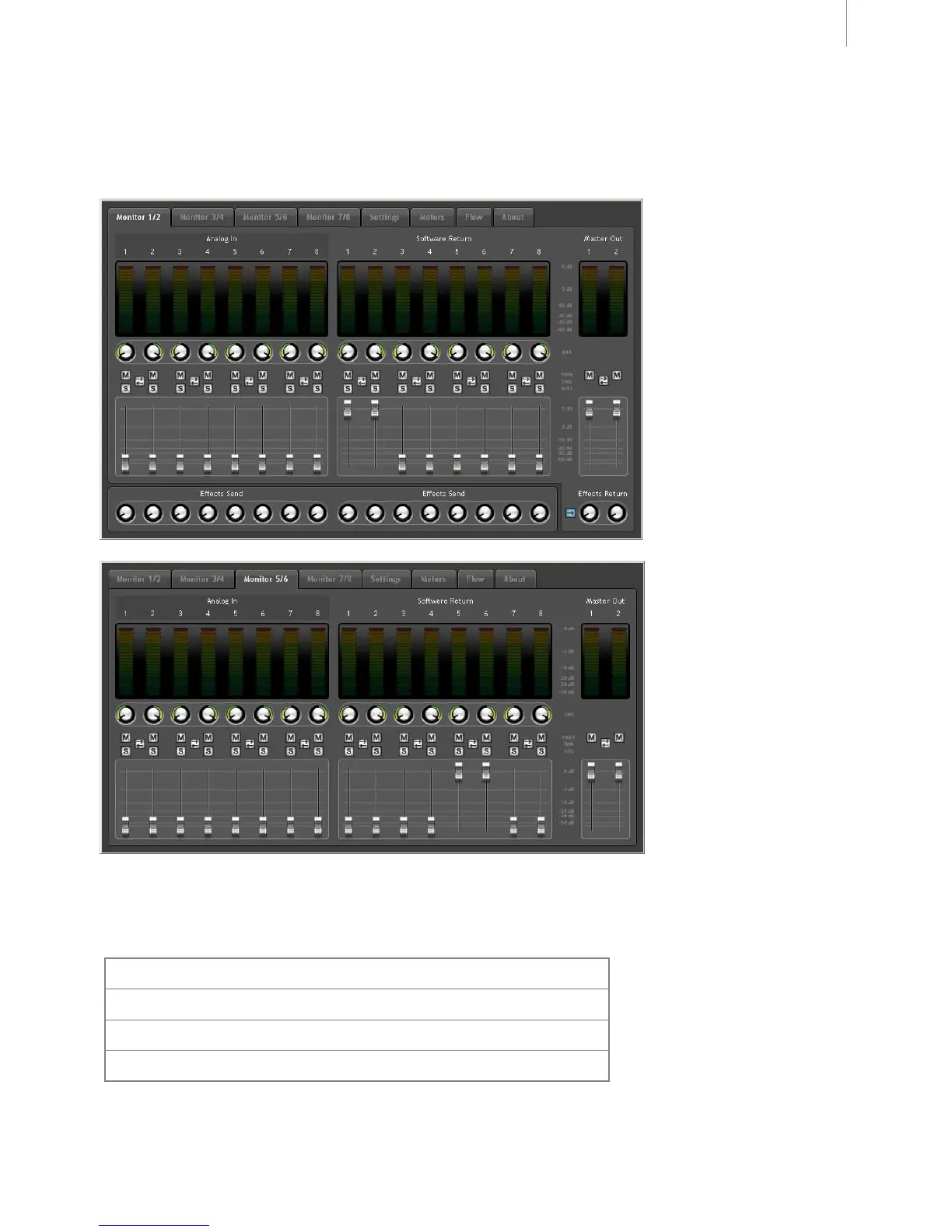 Die vier Monitor-Registerkarten weisen ähnliche Funktionen auf und ermöglichen, vier individuelle Monitor-Mixe aus den