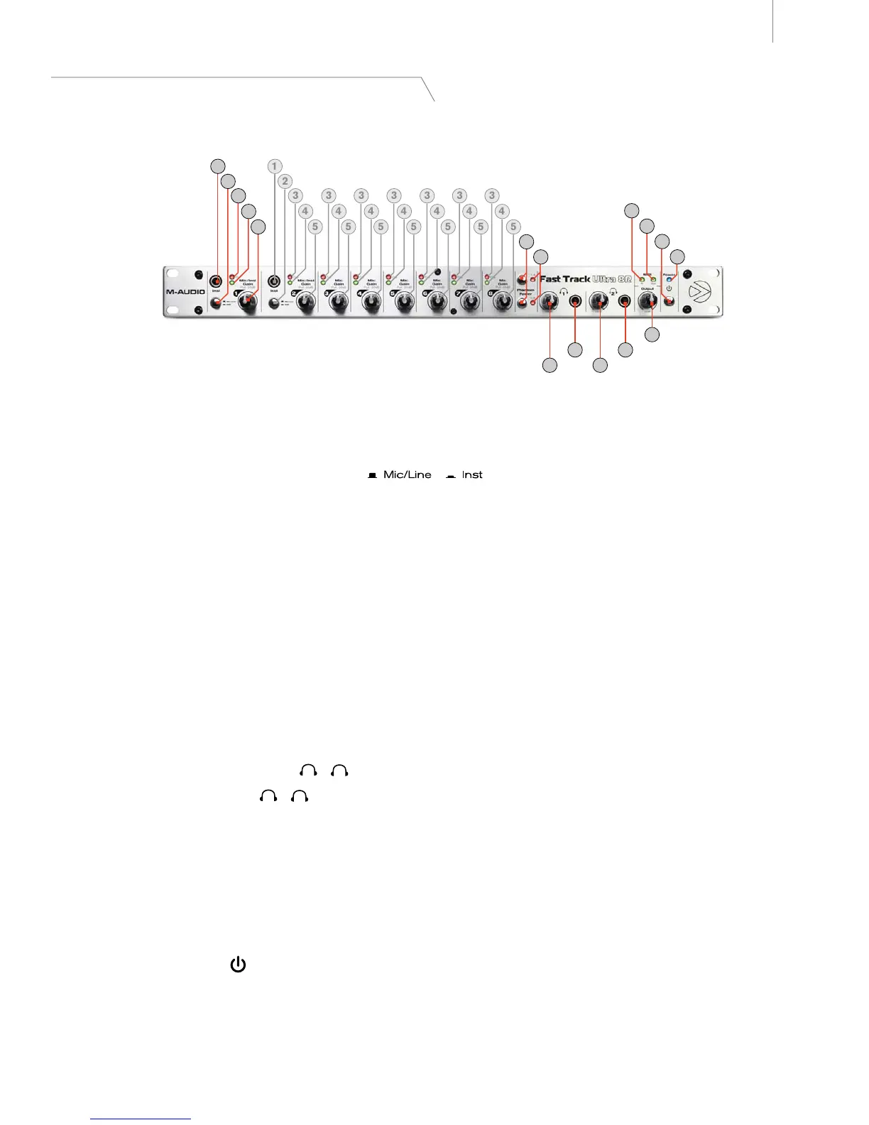 ): Mit diesem Schalter schalten Sie Fast Track Ultra 8R ein. Im eingeschalteten Zustand leuchtet die