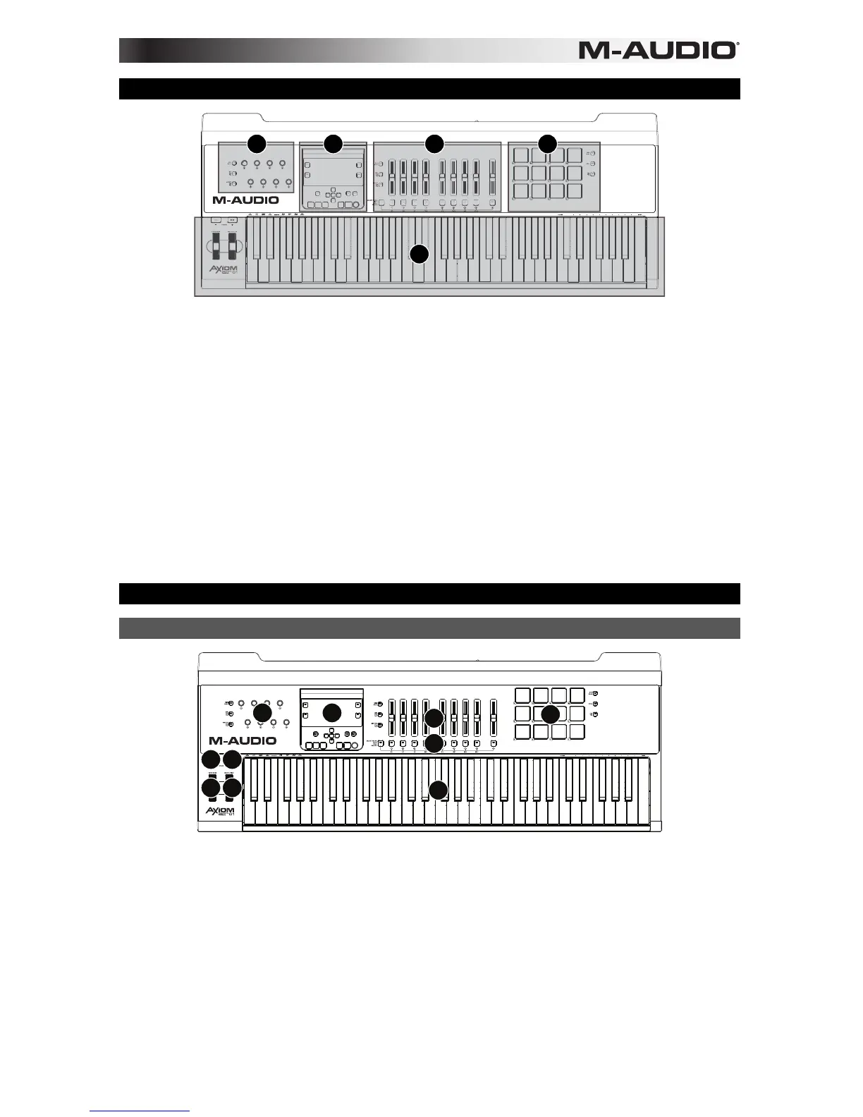 Ésta es una vista general de los controles del Axiom AIR 61, divididos en secciones: