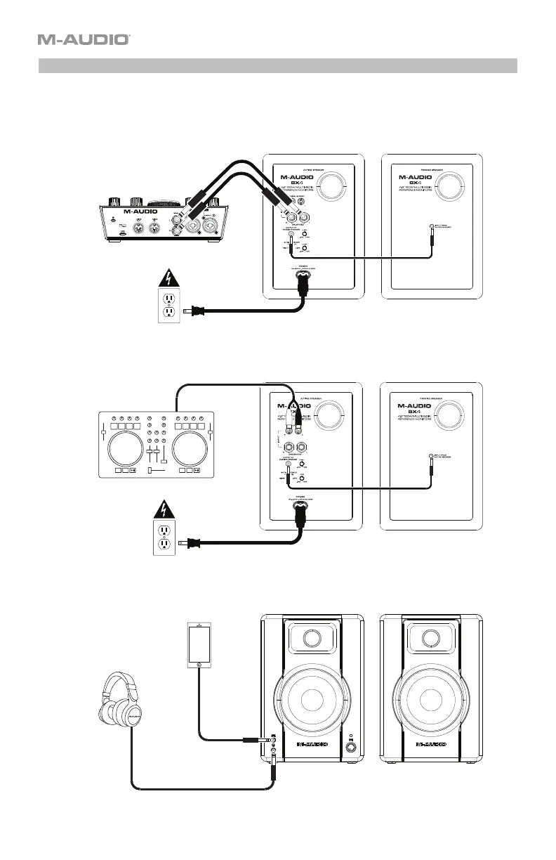 M-Audio BX4 - Connection Diagrams; Connecting to Audio Interface; Connecting to DJ Controller; Connecting to Auxiliary Media Player