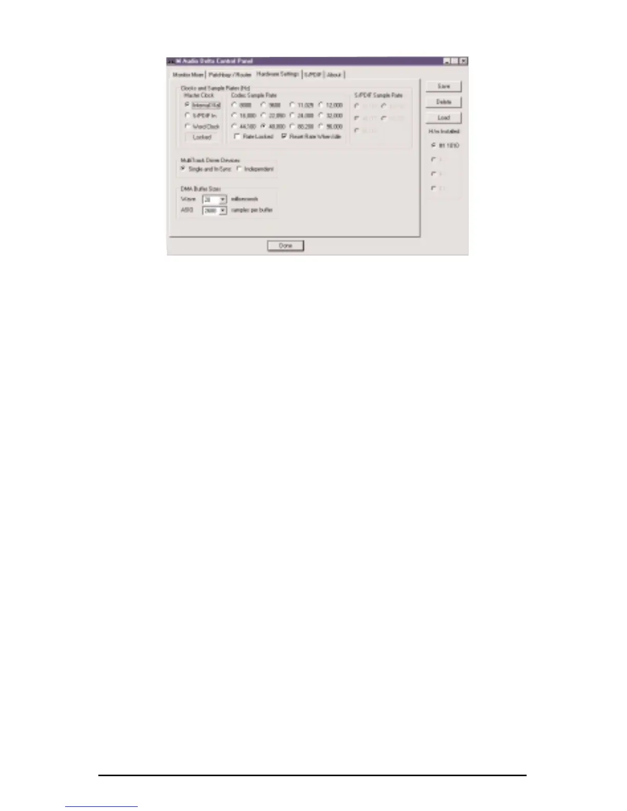 6. Select ‘Internal Xtal’ as the master clock source. This allows the Delta 1010 to