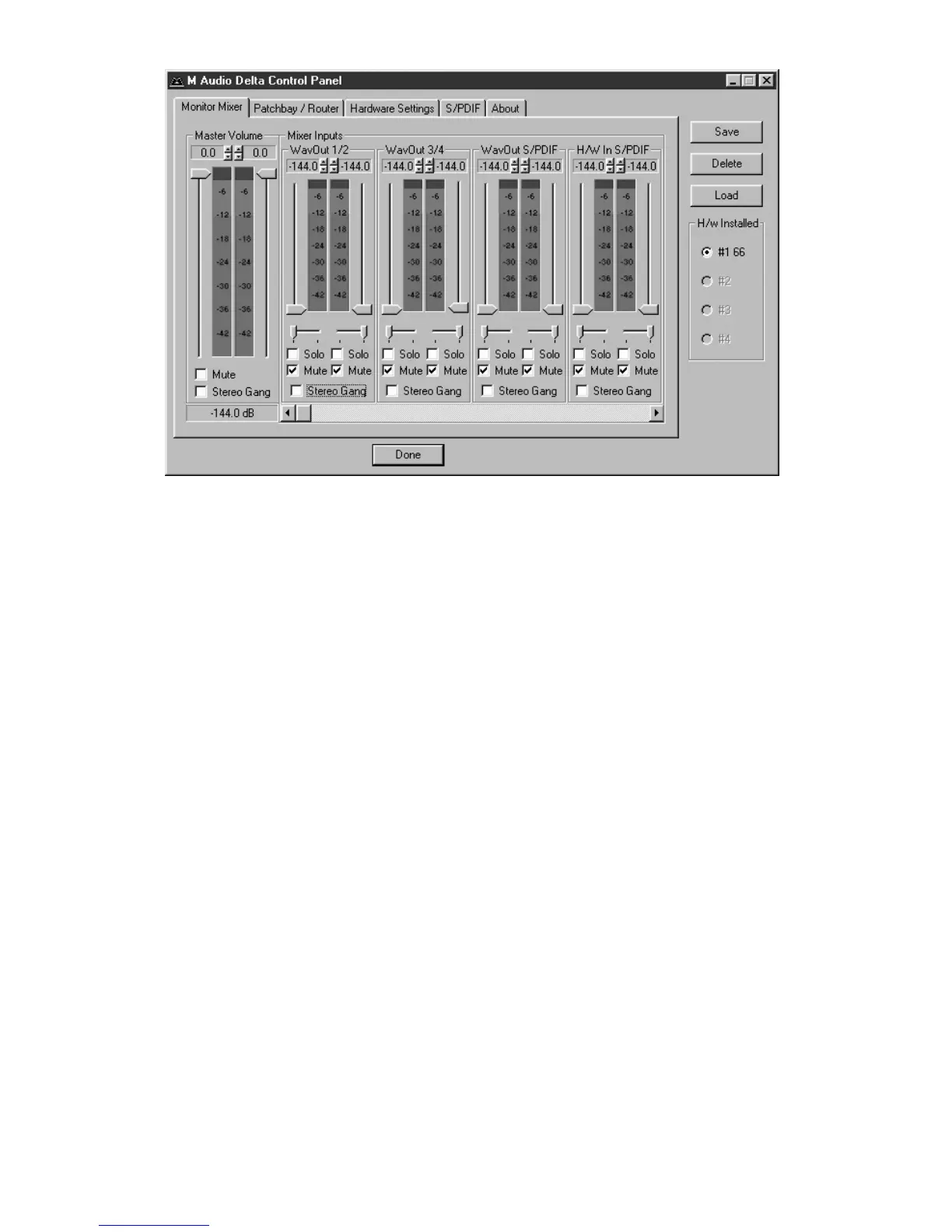 setting, –144dB, which essentially mutes the audio. A pair of level faders may be