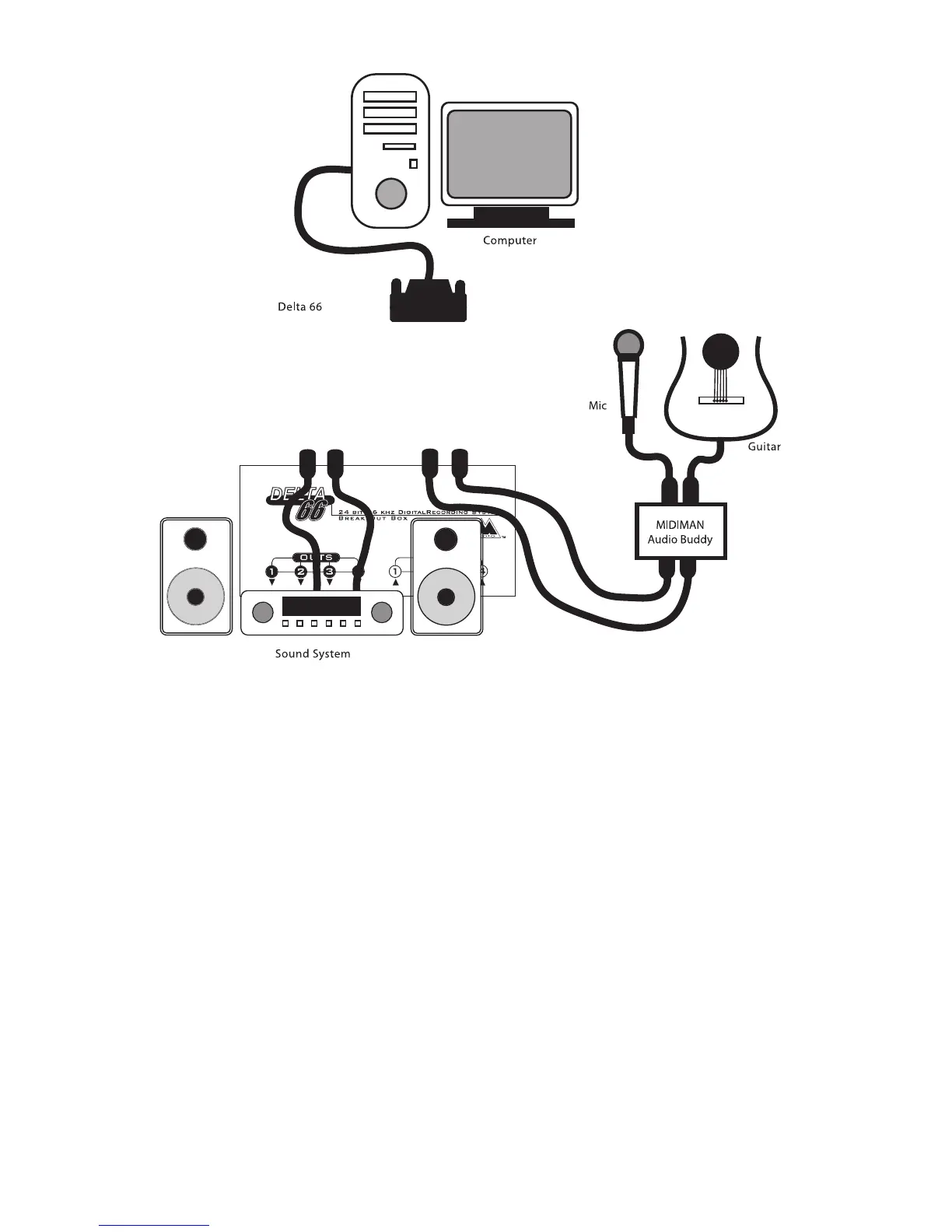 3. Plug the hardware outputs 1 & 2 of the Delta 66 to a sound system or power amp