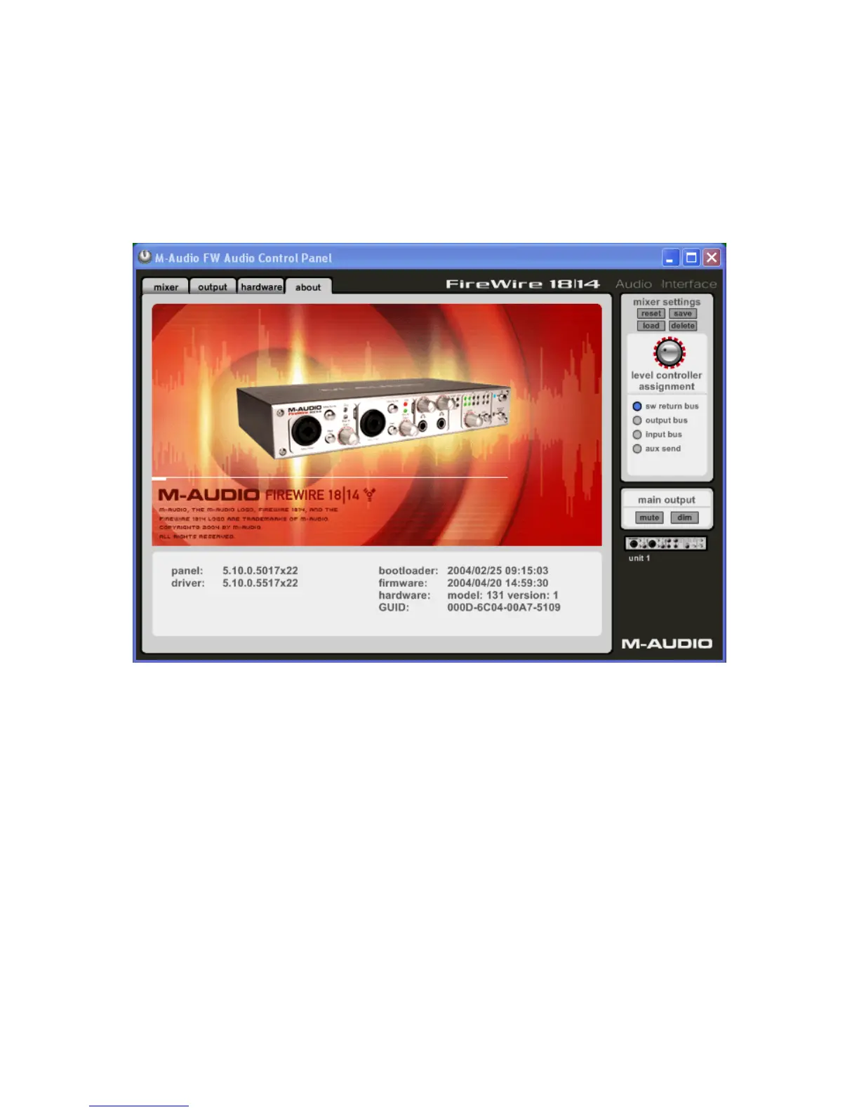 call for technical support. Clicking the M-AUDIO logo in the lower right hand corner will