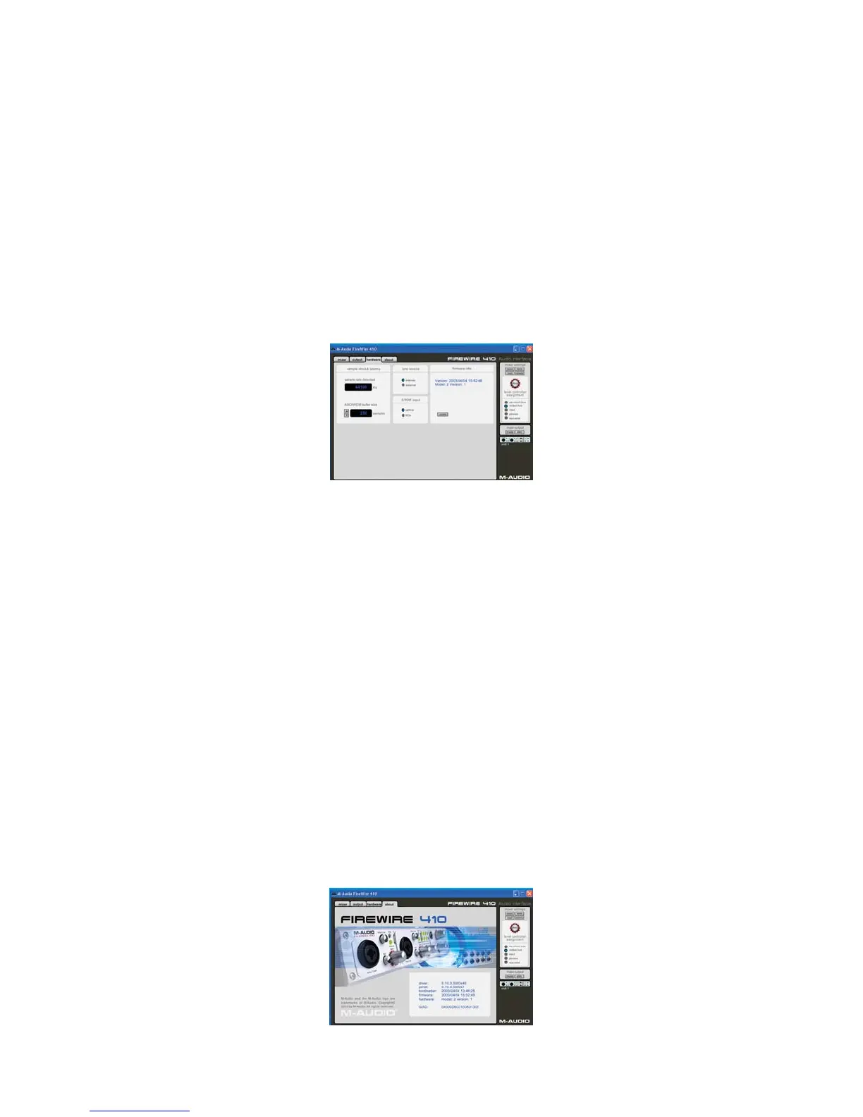 FIRMWARE INFO – This field displays the current firmware version of your FireWire 410.