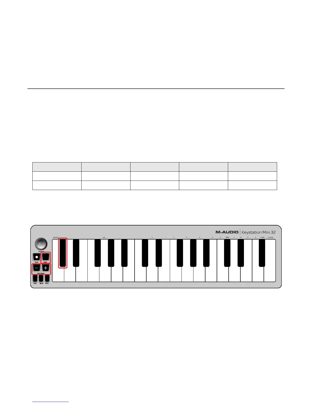 3 Press either the “+” or “-” button to raise or lower the octave.