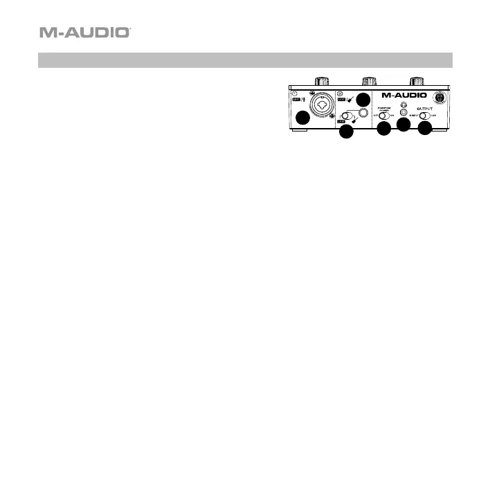 4. +48V (Phantomspeisung)-Schalter: Dieser Schalter aktiviert/deaktiviert die Phantomspeisung für die