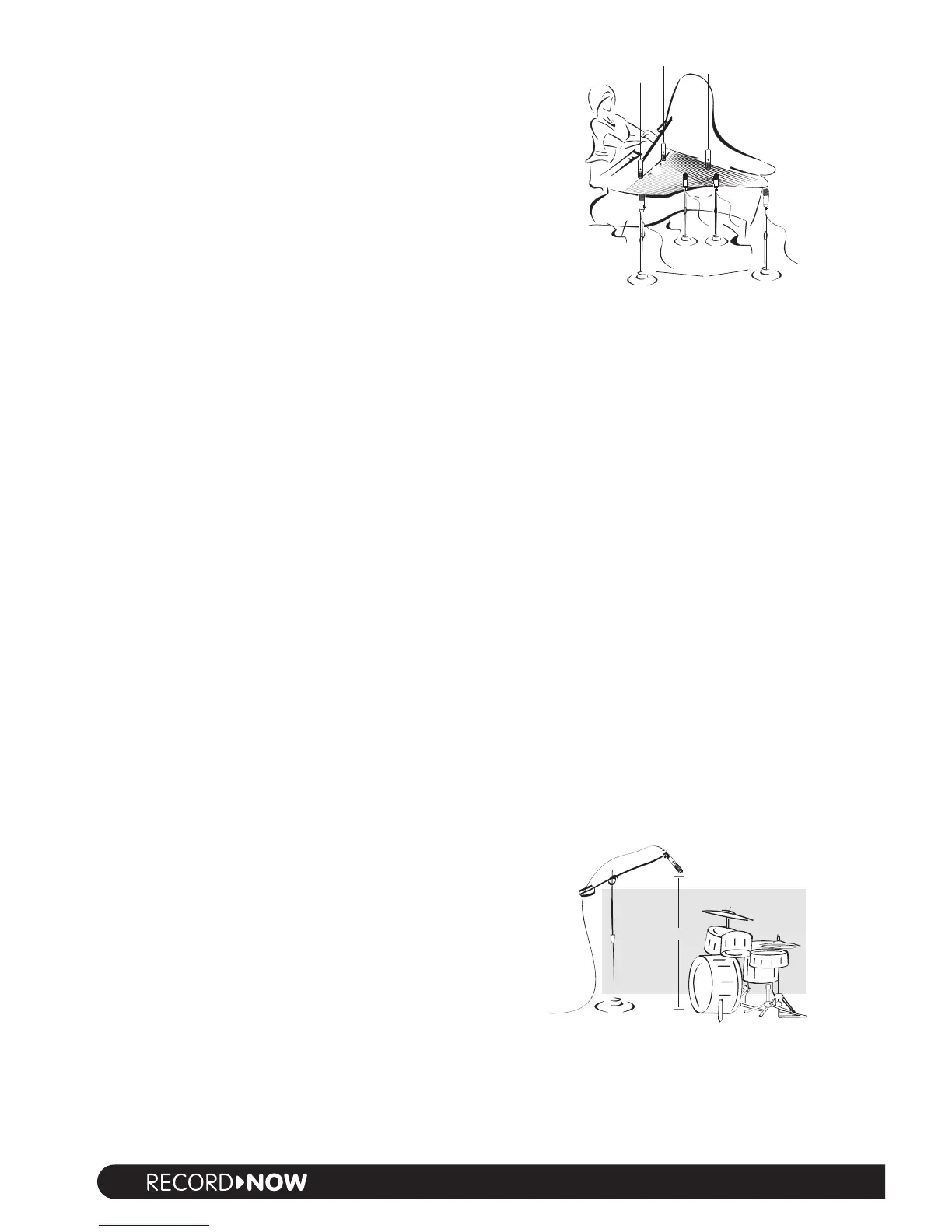 your disposal, try a combination of close-miked stereo pair on top, a single mic on the underside,