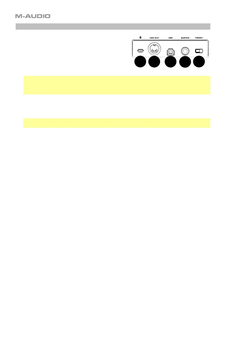 4. MIDI Out: Use a standard 5-pin MIDI cable to connect this port to a hardware synth or other MIDI