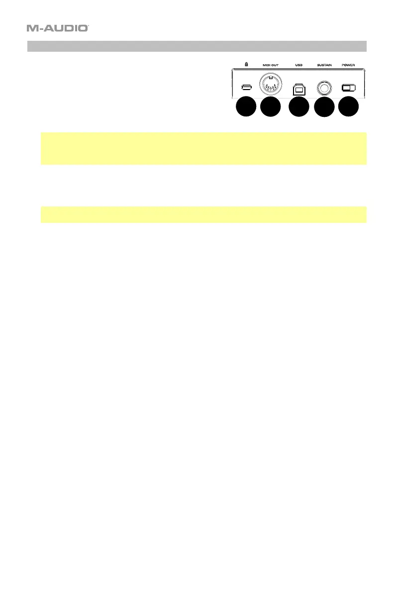 4. MIDI Out: Use a standard 5-pin MIDI cable to connect this port to a hardware synth or other MIDI