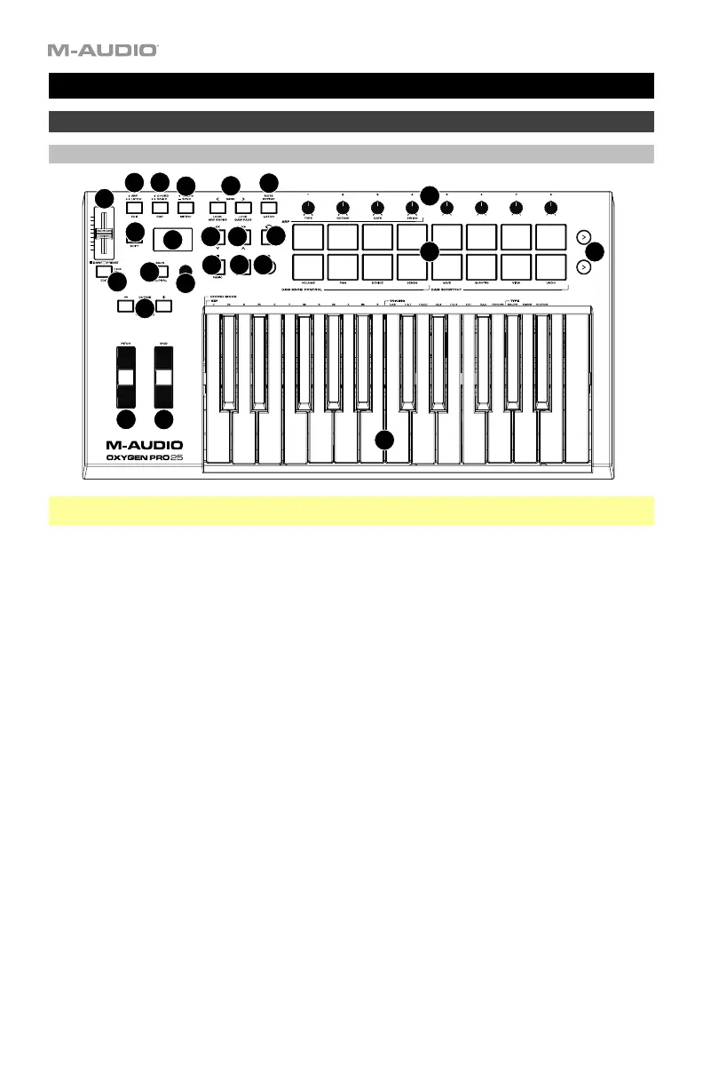 5. DAW/Preset Button: Press this button to set Oxygen Pro 25 to operate in DAW Mode or Preset Mode.