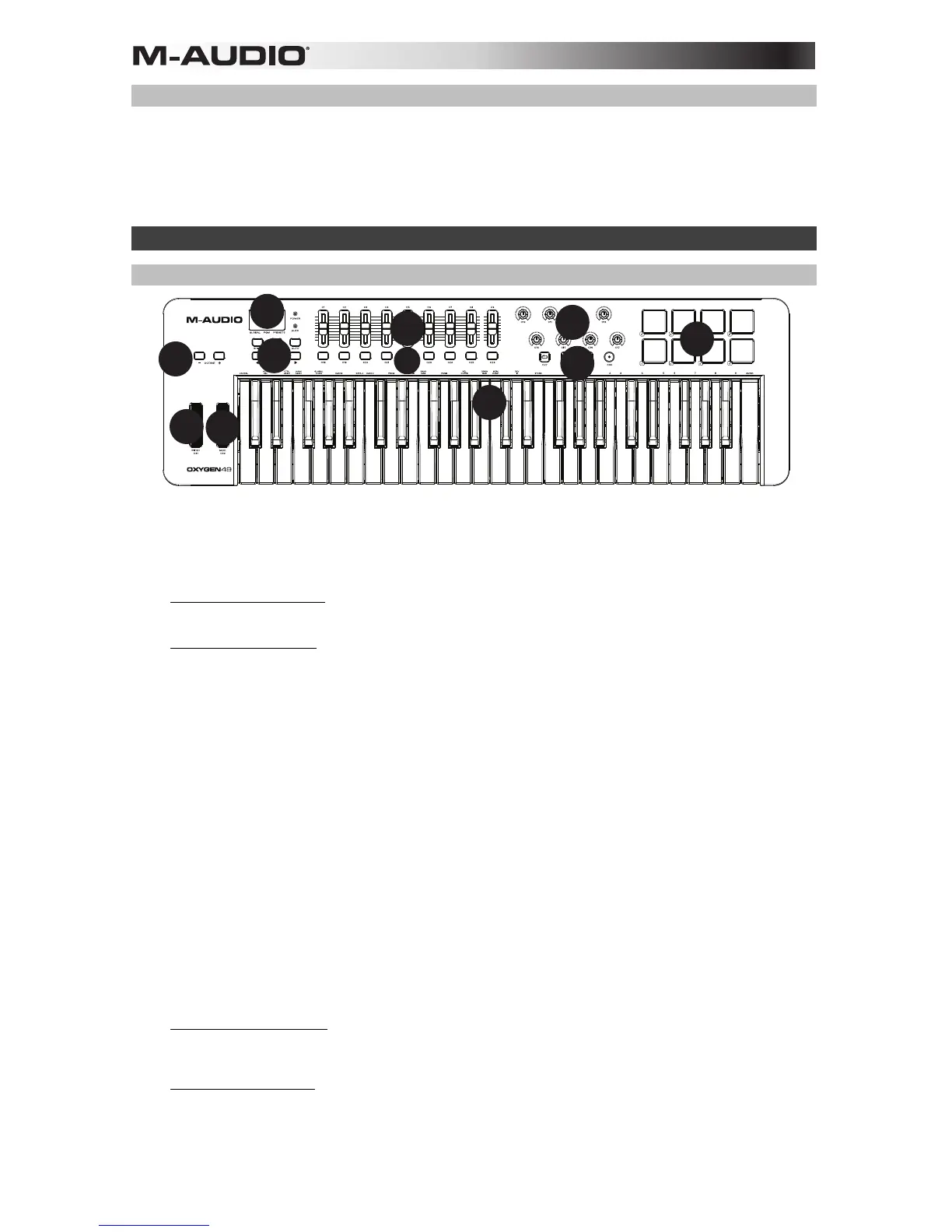 1. Schermo a LED: l'Oxygen 49 presenta un display LED a 3 cifre che fornisce informazioni visive in merito