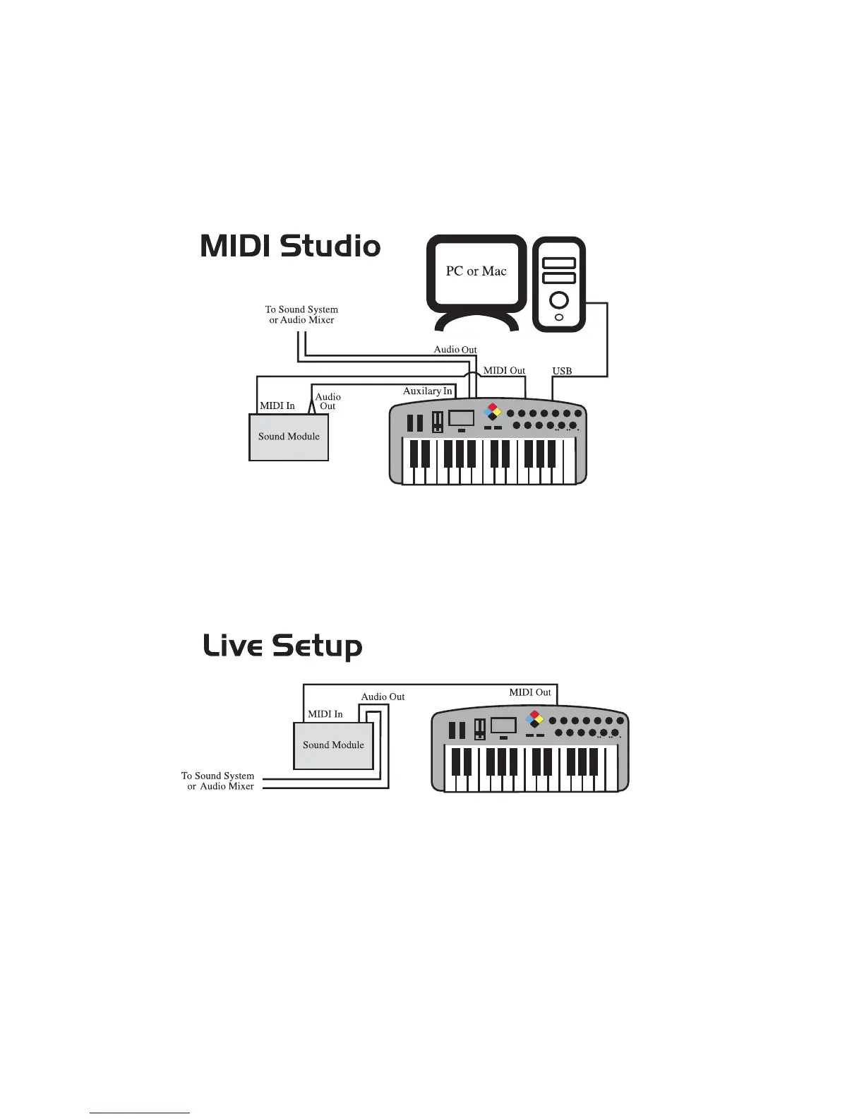 use the MIDI out port that is labeled “Keyboard.” A setup such as this may