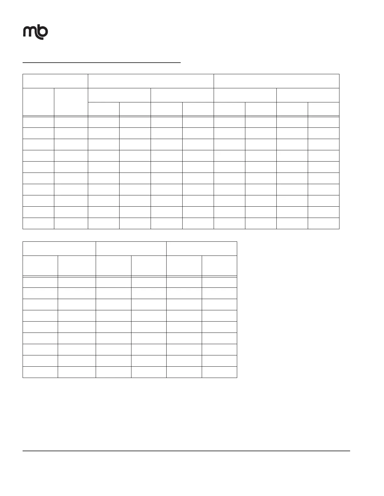 Table 1: For 37° & 45° (Machined or Flared) and MegaSeal