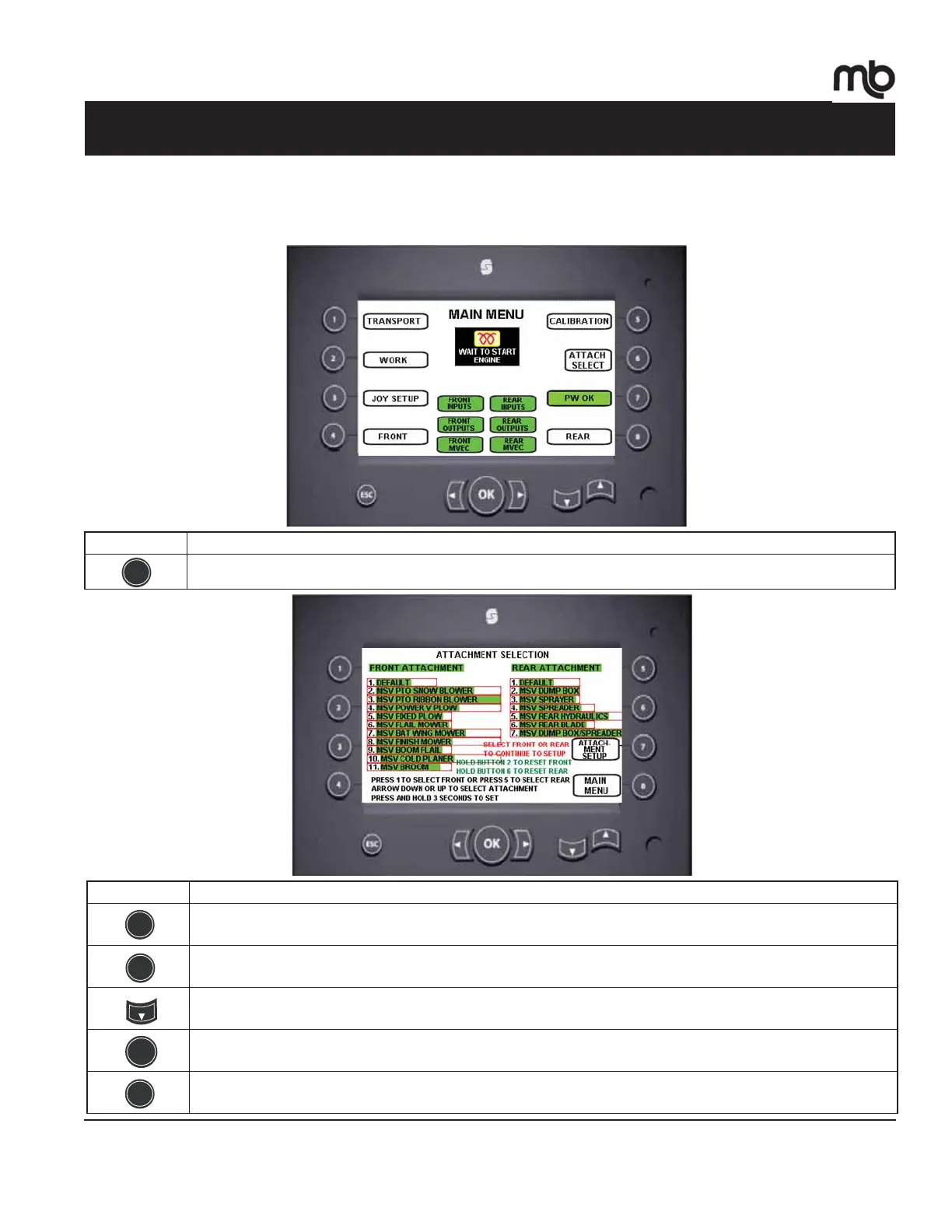 The following examples apply once the initial attachment setup has been performed by M-B or a factory trained MSV dealer.