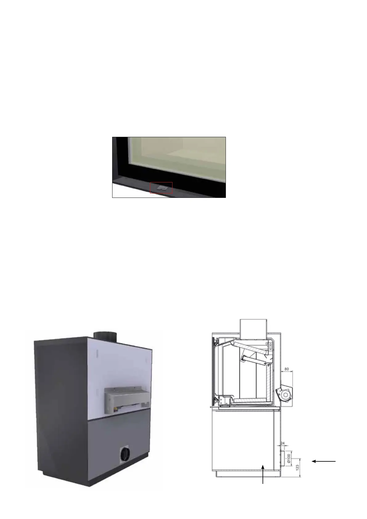 Fresh air can be supplied at the rear of the Woodbox (1) or at the bottom (2) via a hole to the cellar. If you wish to use air