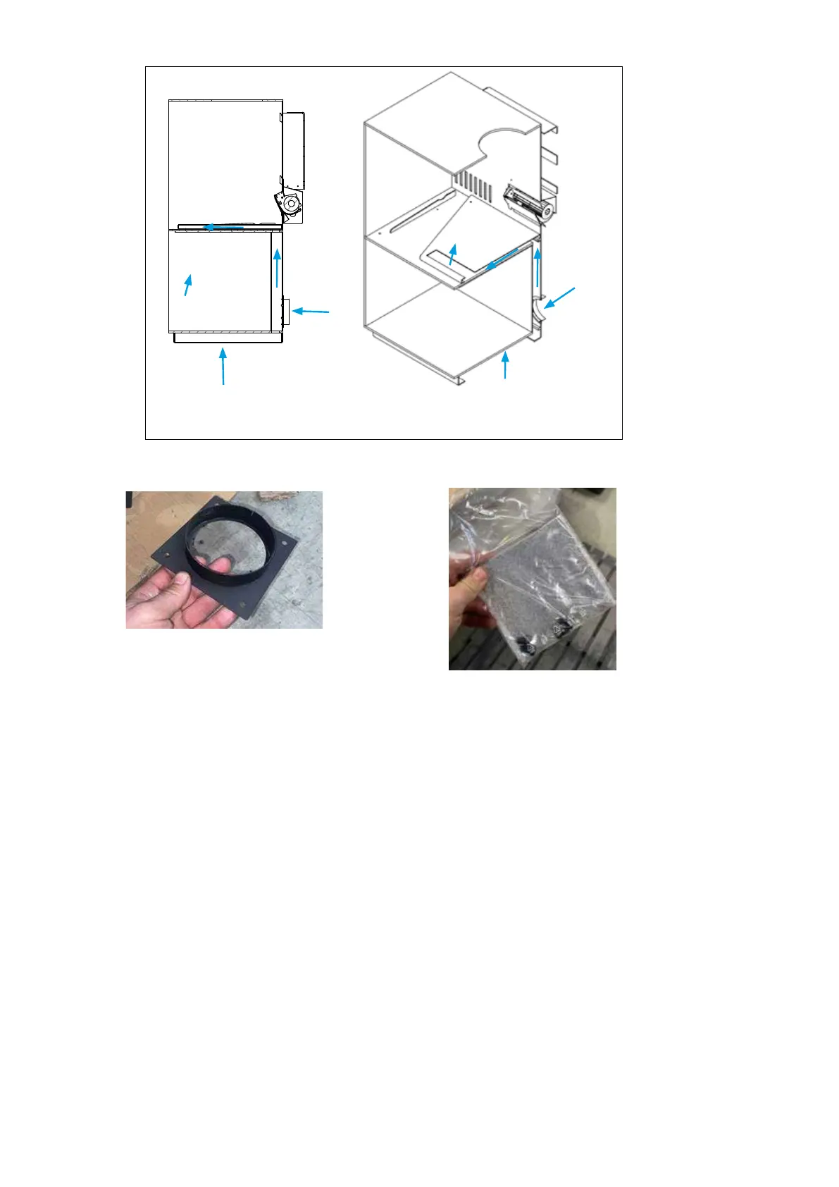 If the fresh air is provided at the bottom, the inlet plate at the rear must be replaced by a supplied flat plate