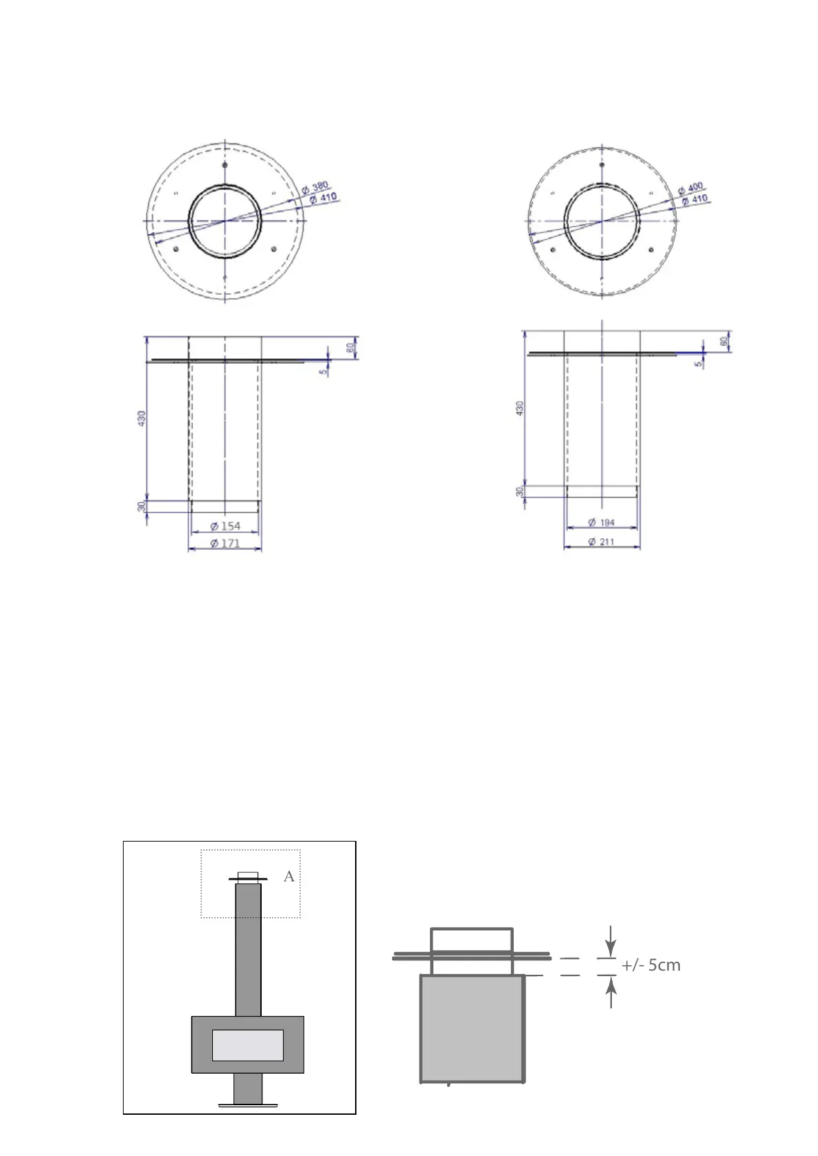 A minimum distance of 5 cm must be maintained between the ceiling connection and the decorative pipe. This is to guarantee