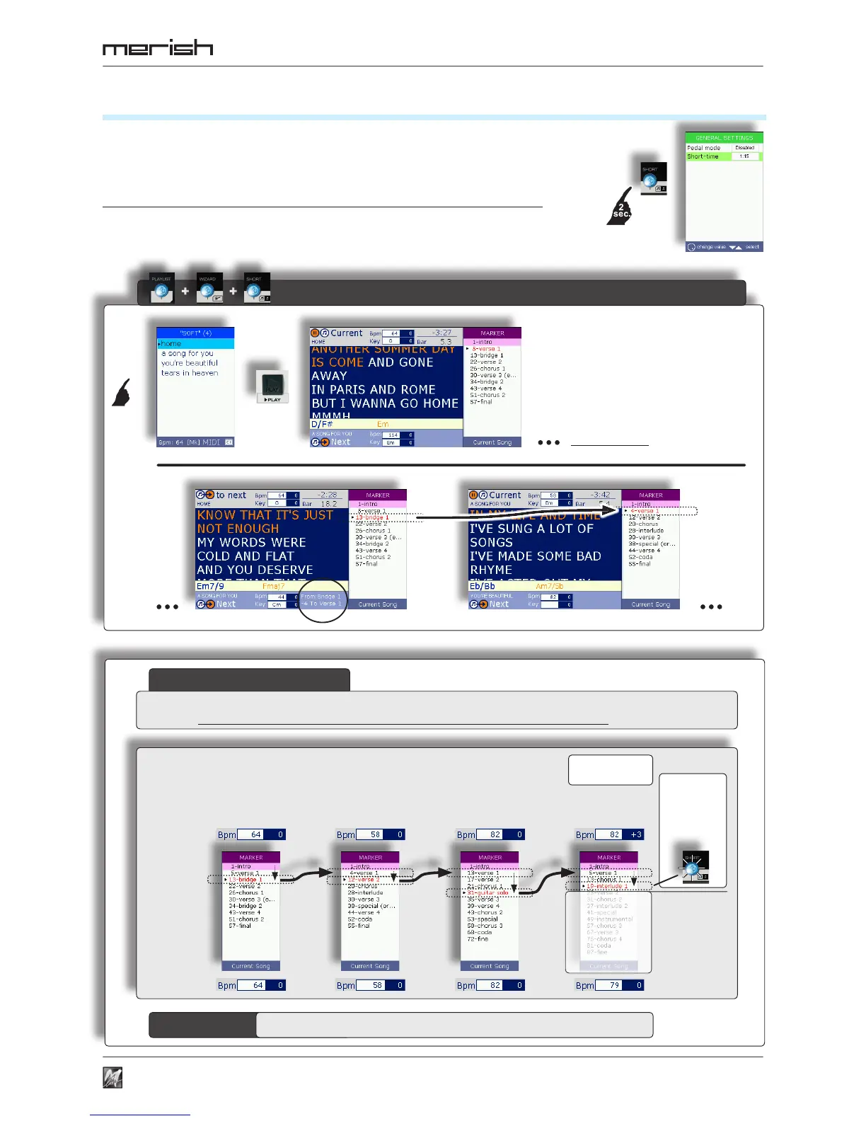 The Short function allows to perform the songs in short versions, which are variable according to
