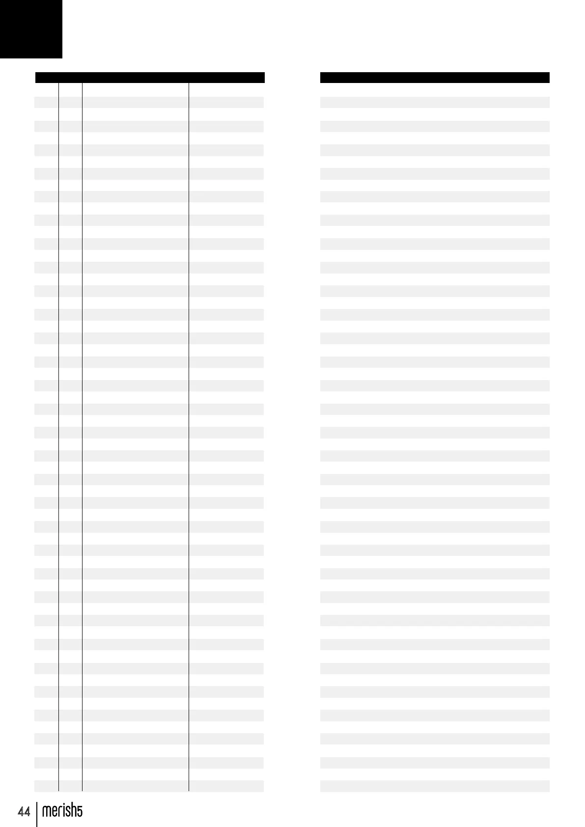 “The tables shown in the User Manual may have minor differences with respect to the actual content of Merish5.