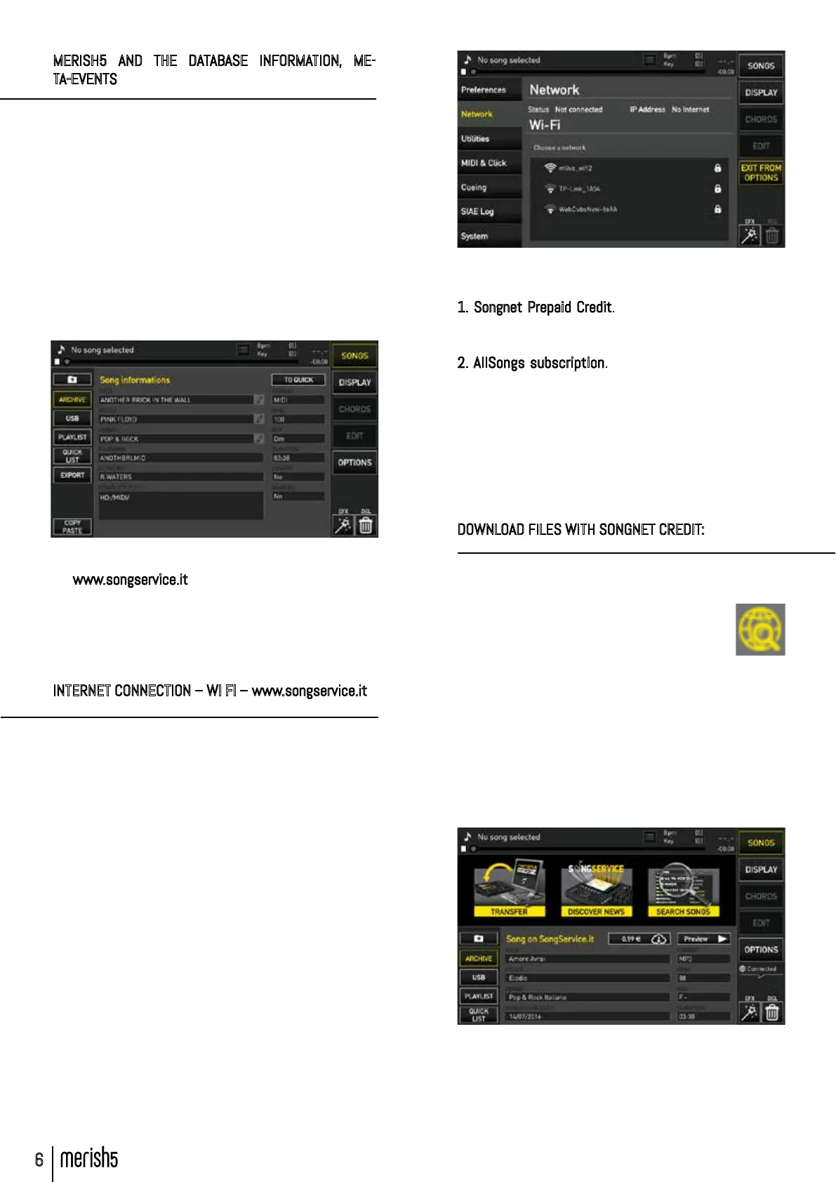 www.songservice.it contain the following informa-