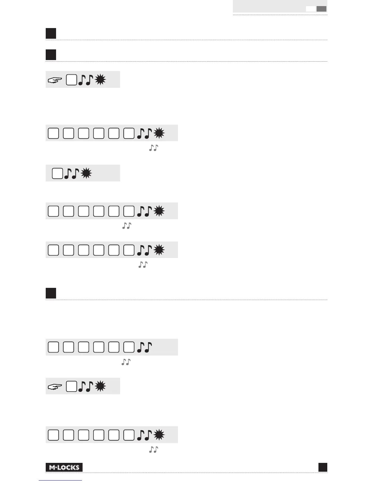 Press and hold ‘1’ until a double signal sounds. The LED will illuminate when performing the following