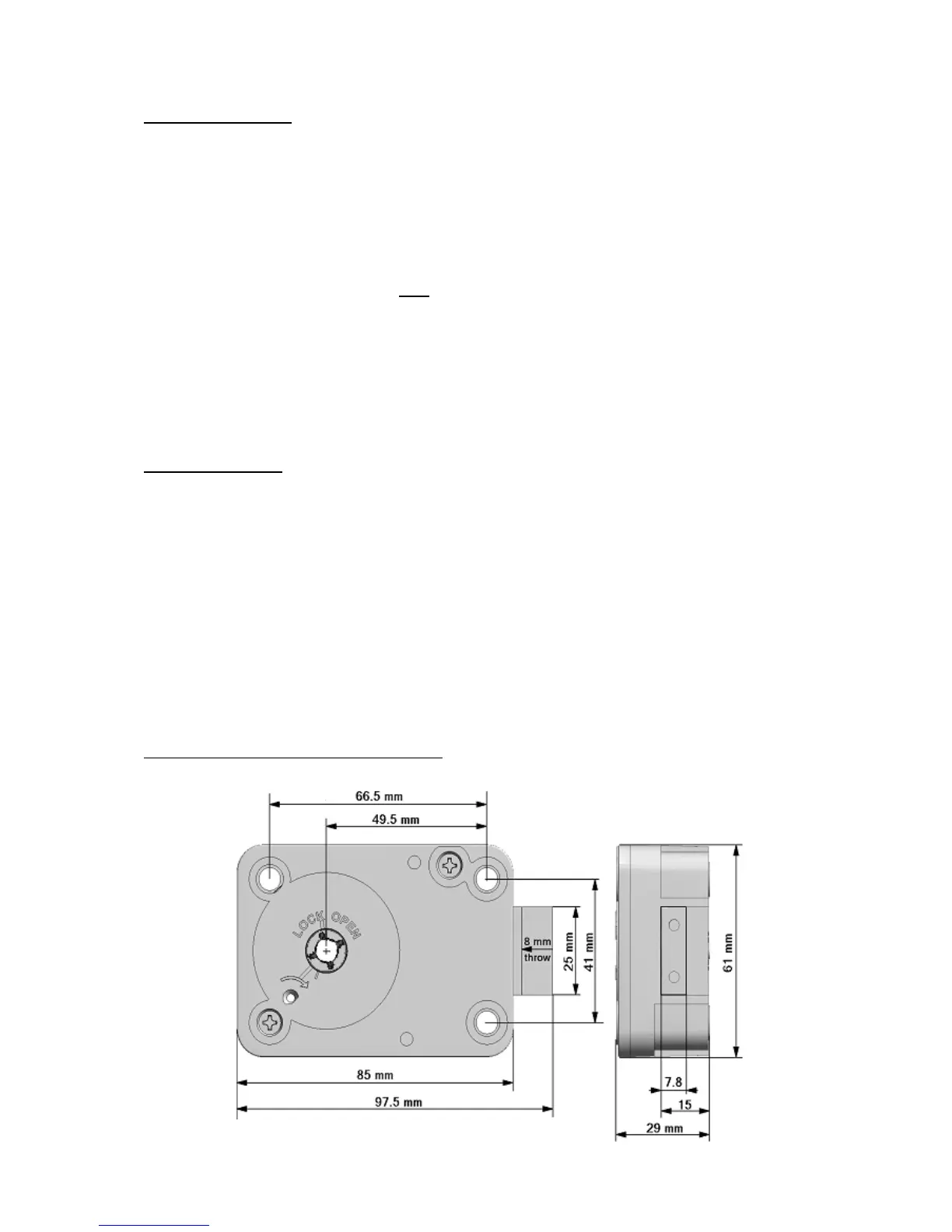 Measurements: 85mm x 61mm, x 29mm. Lock bolt: 25mm x 8mm with two M4 holes in the bolt. Bolt