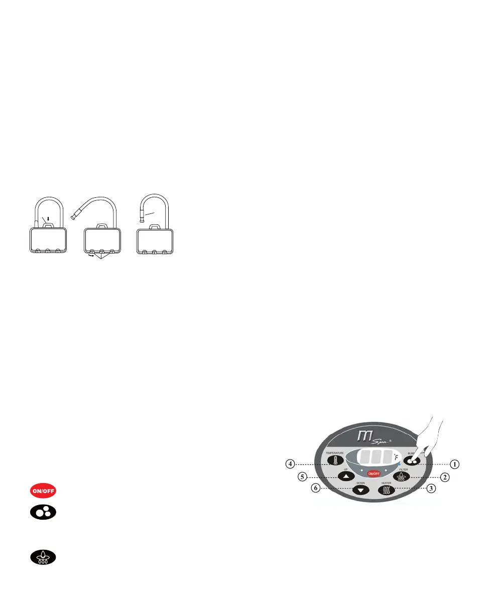 tant que le spa n’est pas rempli d’eau à la marque d’eau basse.