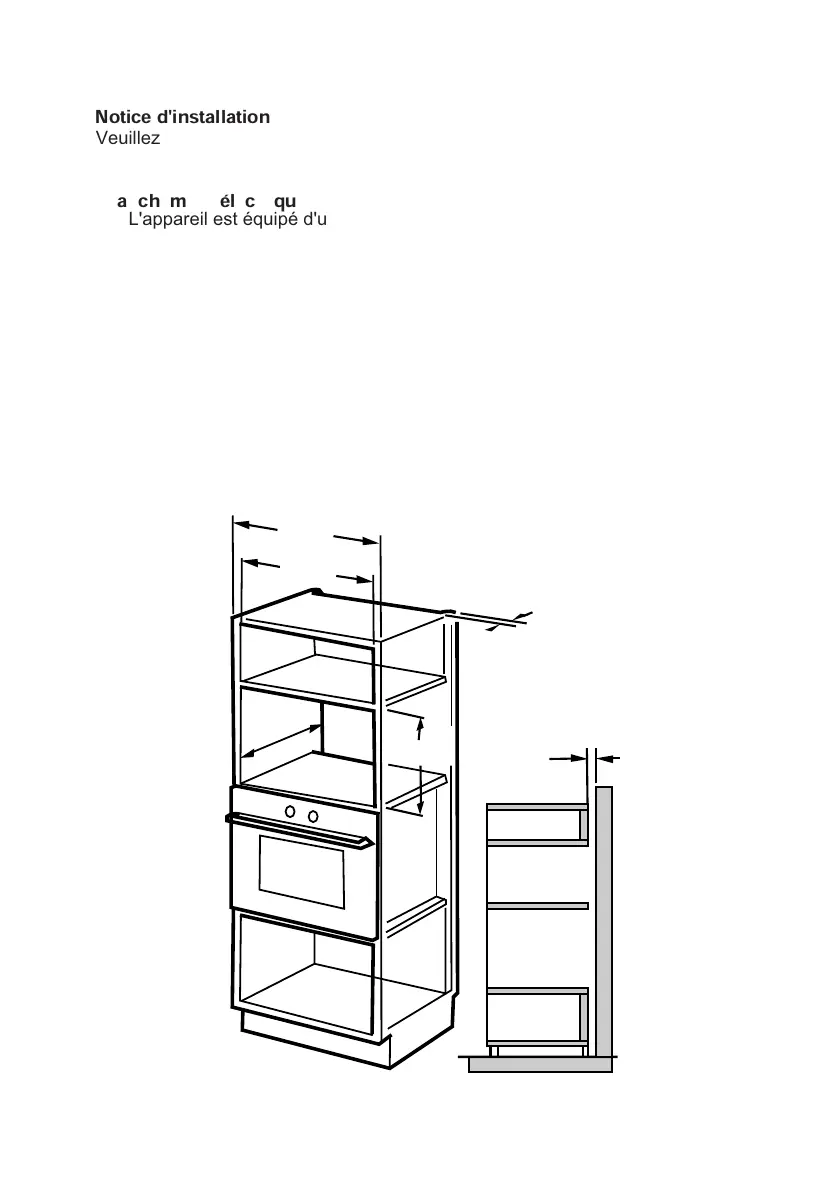 Le meuble où l'appareil est encastré ne doit pas avoir de panneau à l'arrière.